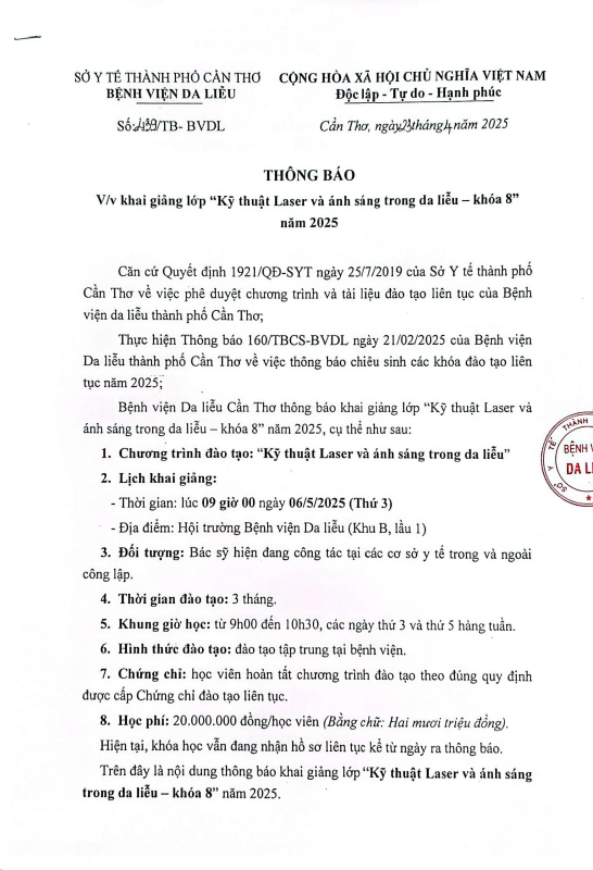 Địa điểm: Hội trường Bệnh viện Da liễu (Khu B, lầu 1)