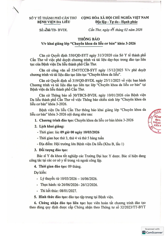 Địa điểm: Hội trường lớn Bệnh viện Da liễu (Khu B, lầu 1)