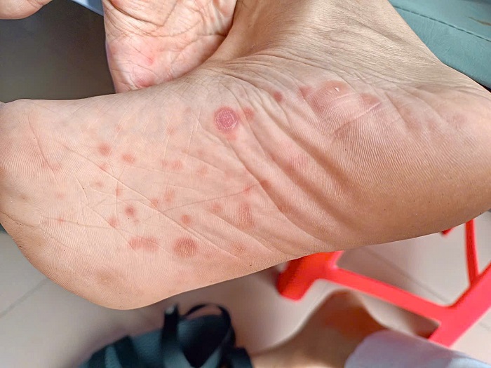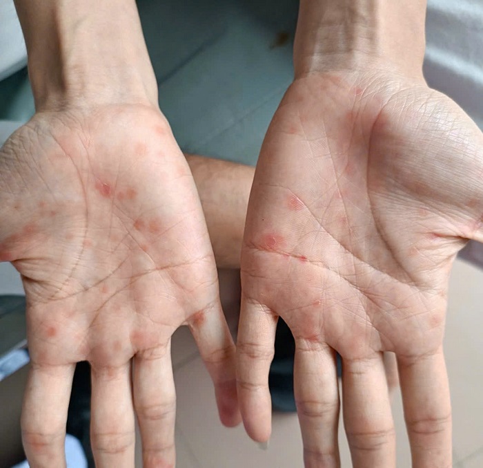 Sẩn vảy giang mai ở lòng bàn tay, bàn chân (hình thực tế tại BVDL Cần Thơ)