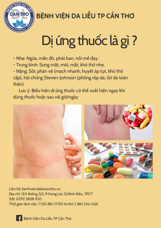* Dị ứng thuốc có thể dẫn đến nhiều biến chứng nguy hiểm, vì vậy không nên chủ quan. Nếu bạn gặp bất kỳ triệu chứng bất thường nào sau khi dùng thuốc, hãy liên hệ ngay với Bệnh viện Da liễu TP. Cần Thơ để được tư vấn và hỗ trợ kịp thời.