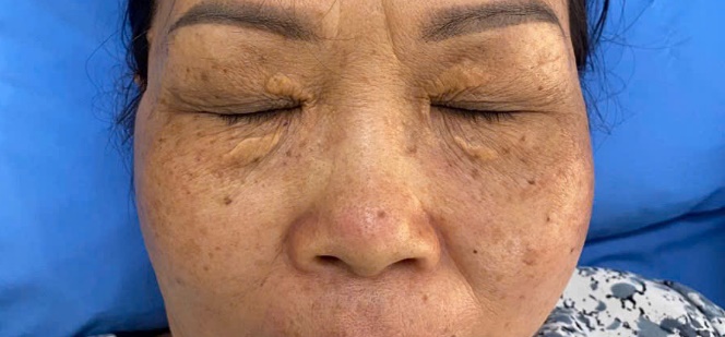 U vàng mi mắt thường xuất hiện dưới dạng những nốt mỡ nhỏ, vàng nhạt, tích tụ ở mí mắt trên hoặc dưới. Mặc dù không ảnh hưởng đến thị lực, nhưng u vàng có thể khiến bạn cảm thấy tự ti về ngoại hình.