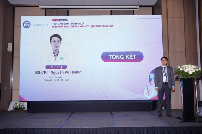 Chương trình khép lại với phần kết luận của BS.CKII. Nguyễn Vũ Hoàng – Phó Giám đốc Bệnh viện Da liễu thành phố Hồ Chí Minh. Hy vọng sẽ có thêm nhiều hội thảo khoa học để tiếp tục cập nhật kiến thức mang lại hiệu quả điều trị tối ưu nhất cho người bệnh không chỉ riêng về bệnh vảy nến