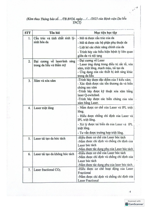 THÔNG BÁO GIA HẠN CHIÊU SINH KHÓA HỌC KỸ THUẬT LASER VÀ ÁNH SÁNG TRONG DA LIỄU KHÓA 9 NĂM 2025