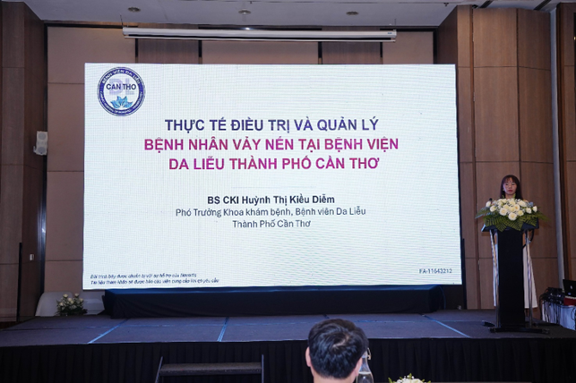 Tiếp nối chương trình, BS.CKI. Huỳnh Thị Kiều Diễm – Phó Trưởng Khoa Khám bệnh, Bệnh viện Da liễu thành phố Cần Thơ trình bày bài báo cáo “Thực tế điều trị và quản lý bệnh nhân vảy nến tại Bệnh viện Da liễu thành phố Cần Thơ”