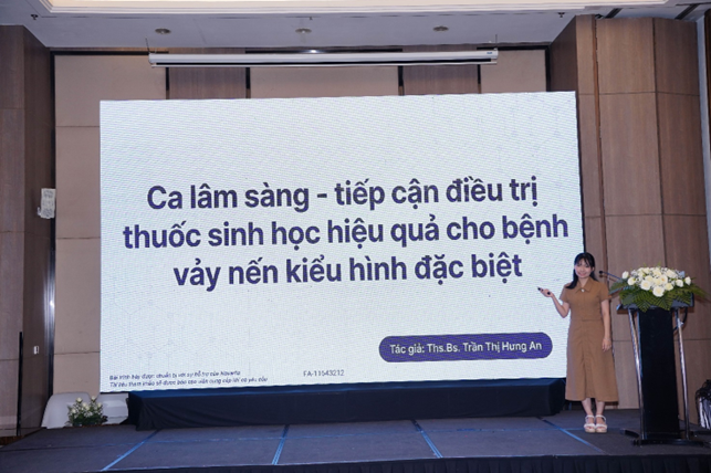 Và cuối cùng là bài báo cáo của Ths.BS. Trần Thị Hưng An – Khoa Khám bệnh, Bệnh viện Da liễu thành phố Cần Thơ với nội dung “Ca lâm sàng – tiếp cận điều trị thuốc sinh học hiệu quả cho bệnh nhân vảy nến kiểu hình đặc biệt”