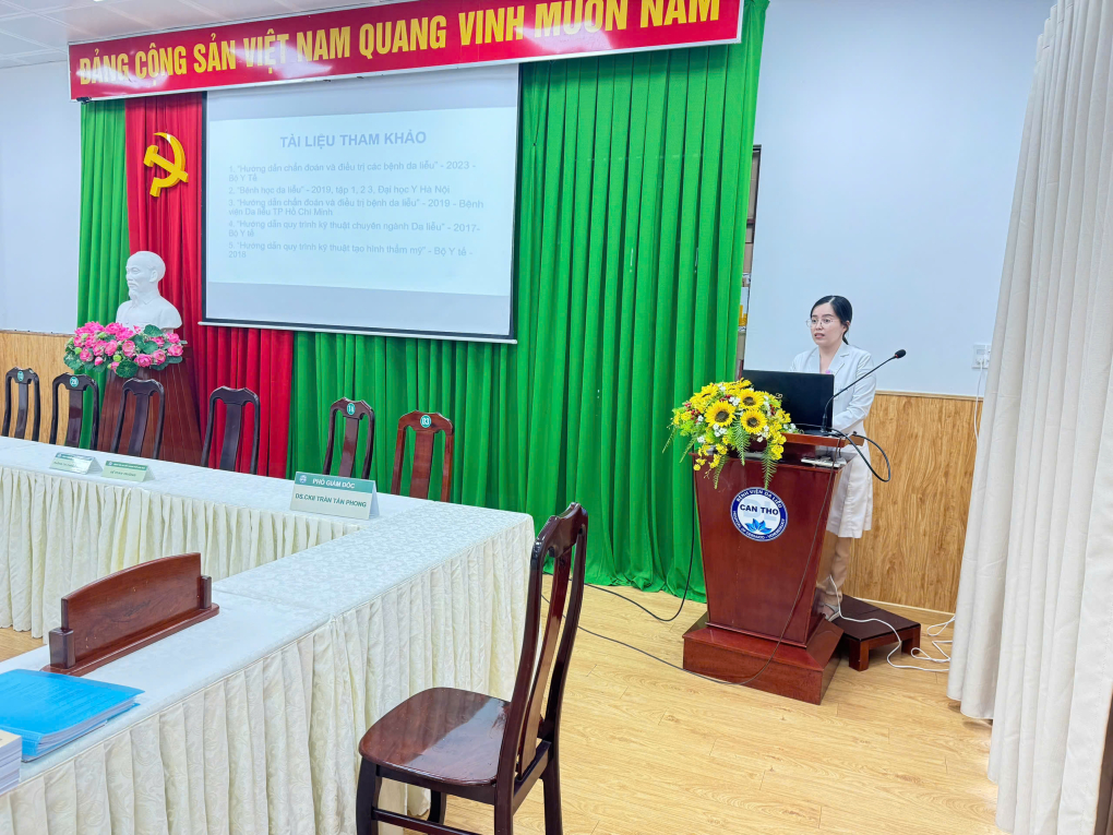 Nhằm bảo đảm việc triển khai thống nhất các quy trình kỹ thuật chuyên ngành trong hoạt động khám bệnh, chữa bệnh; kịp thời cập nhật, chuẩn hoá quy trình chuyên môn theo quy định hiện hành, bảo đảm phù hợp với phạm vi hoạt động, năng lực chuyên môn, cơ sở vật chất và nhân lực của đơn vị. Chiều ngày 09/04/2026, Bệnh viện Da liễu thành phố Cần Thơ đã tổ chức tập huấn, phổ biến 112 Quy trình kỹ thuật khám bệnh, chữa bệnh chuyên ngành Da liễu - thẩm mỹ và 151 Hướng dẫn chẩn đoán và điều trị các bệnh da liễu, để thống nhất áp dụng và tăng cường kiểm tra, giám sát việc tuân thủ của nhân viên y tế trong quá trình thực hiện
